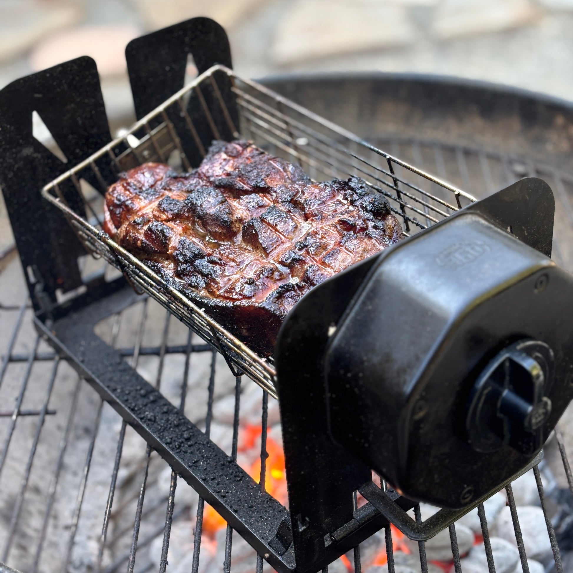 The ROTO-Q’s versatile design works seamlessly with ovens, grills, and open flames, giving you the flexibility to cook anywhere. Whether you're indoors or outdoors, it ensures perfectly even rotation and delicious results every time.